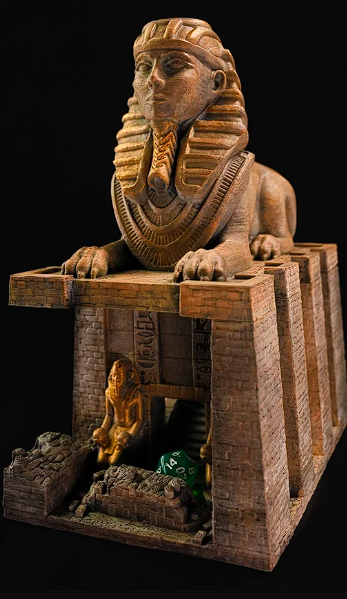 "The Pharaoh's Pyramid": Transport yourself to the ancient lands of Egypt with "The Pharaoh's Pyramid" dice tower. Inspired by the majestic structures of the Pharaohs, this architectural marvel features meticulously carved hieroglyphics, adorned with golden accents and precious gemstones. Your dice will descend through hidden chambers, secret passages, and winding corridors, capturing the essence of ancient mysteries. With its regal presence and captivating design, "The Pharaoh's Pyramid" is a treasure fit for any tabletop adventurer.