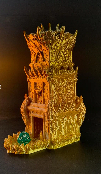 "The Orc Warforge": Enter the realm of brutal strength and fierce warriors with "The Orc Warforge" dice tower. Crafted from rugged iron and adorned with tribal markings, this tower embodies the raw power and indomitable spirit of Orcish clans. The dice will tumble down through the fortified structure, evoking the sound of war drums and battle cries, as if your dice were witnessing a glorious victory. Whether you are a seasoned Orc enthusiast or simply appreciate the ferocity of these formidable creatures, "The Orc Warforge" dice tower is a bold statement on any gaming table.